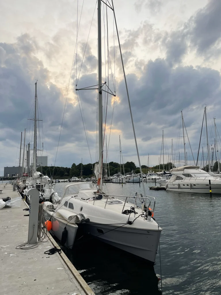 Das Anlegemanöver war nicht gerade berauschend, bei 7 kt Seitenwind versuchte ich in eine Box einzufahren. Nach dreimaligem Versuchen wählten wir einen luxuriösen PLATZ am Kopf eines Steges, der bereits mit Fender belegt war.